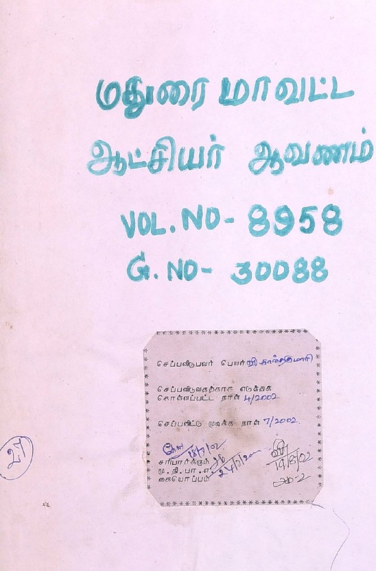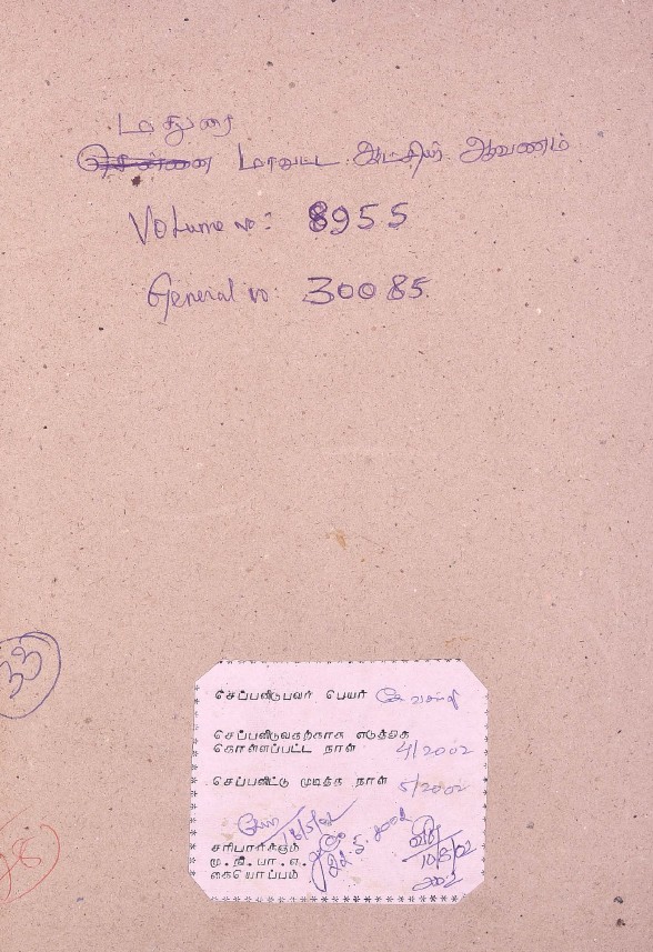 Madurai Collectorate Records-Miscellaneous Records-Letters received from different authorities from September 1856 to November 1856 - Vol. 8954
