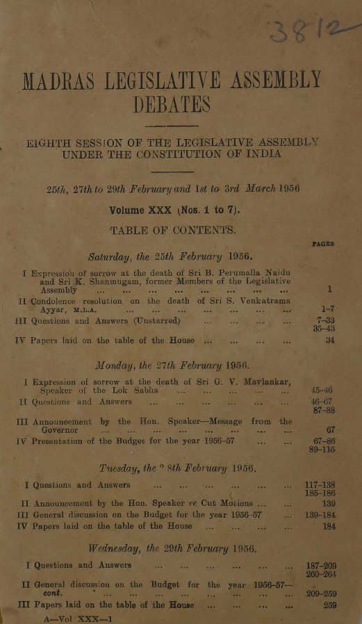 Madras Legislative Assembly Debates - Eighth session of the Legislative Assembly under the Constitution of India, 1955 - Vol. 25 [1-8]