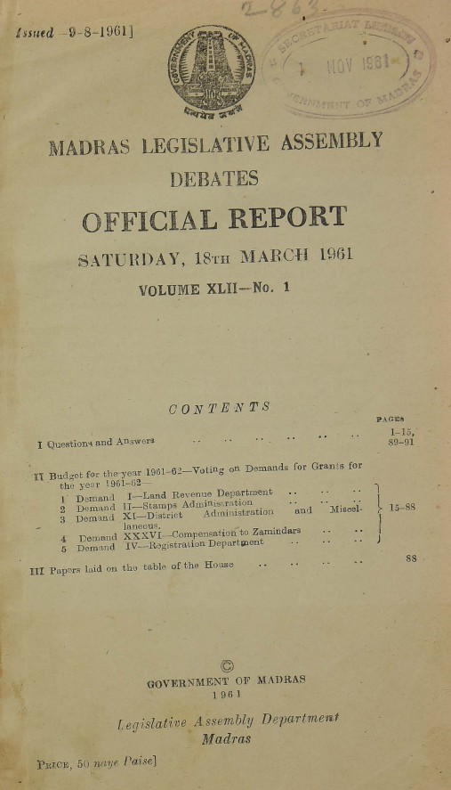 Madras Legislative Assembly debates - Official report, 7th December 1961 - Vol. 49 [1]
