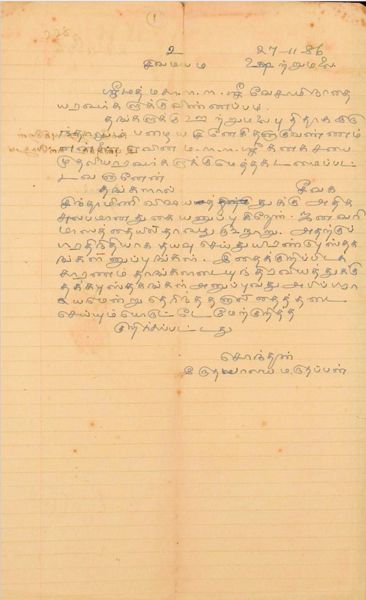 Percy Macqueen Paper Manuscripts : Order of words and omission, Tamil - 7 : kochchai Tamil - Ootacamund