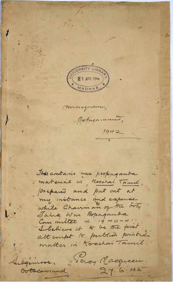 Percy Macqueen Paper Manuscripts : Tamil Colloquial grammar - 9