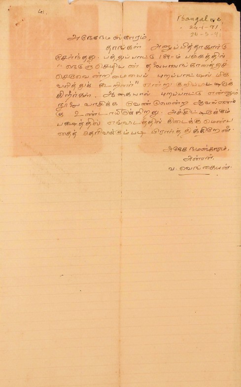 கல்வெட்டு ஆய்வு தொடர்பாக : கல்வெட்டு ஆய்வு மட்டும் செய்வதைத் தெரிவித்தல் மே 3, 1891