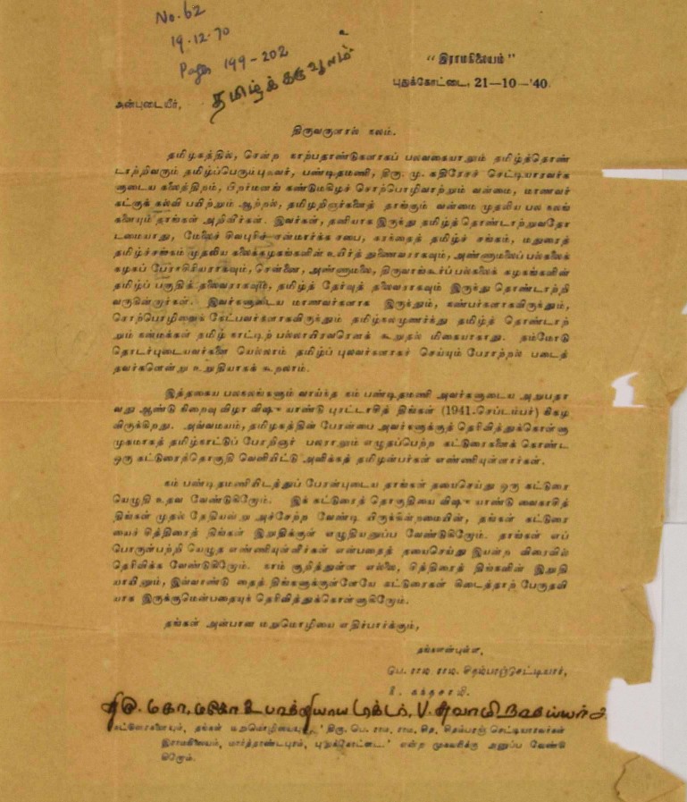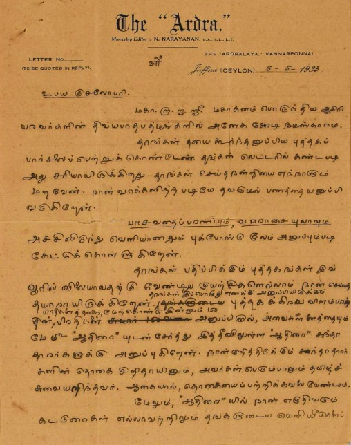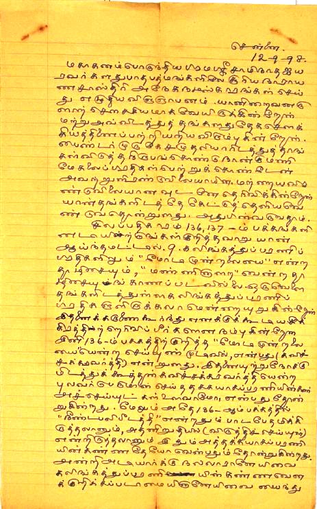 மதுரைக் காஞ்சி விளக்கம் வேண்டுதல் : மதுரைக்காஞ்சியில் எழுந்த ஐயங்களுக்கு விளக்கம் வேண்டி மடல் நவம்பர் 26, 1892