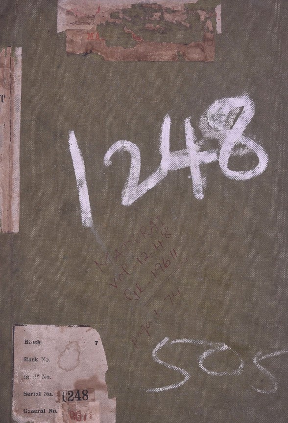 Madurai Collectorate Records-Letters to the Board-5th January to 6th December 1800 - Vol. 1127