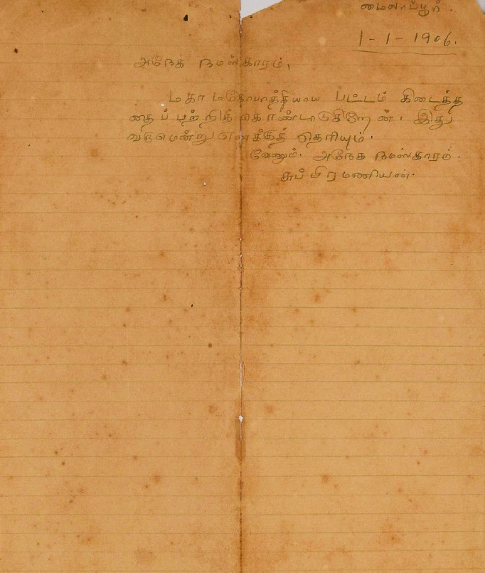 திருவாவடுதுறைக்கோவை வந்து சேர்ந்தது தொடர்பாக சூன் 15, 1903