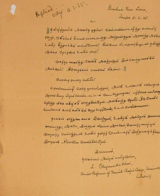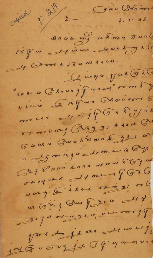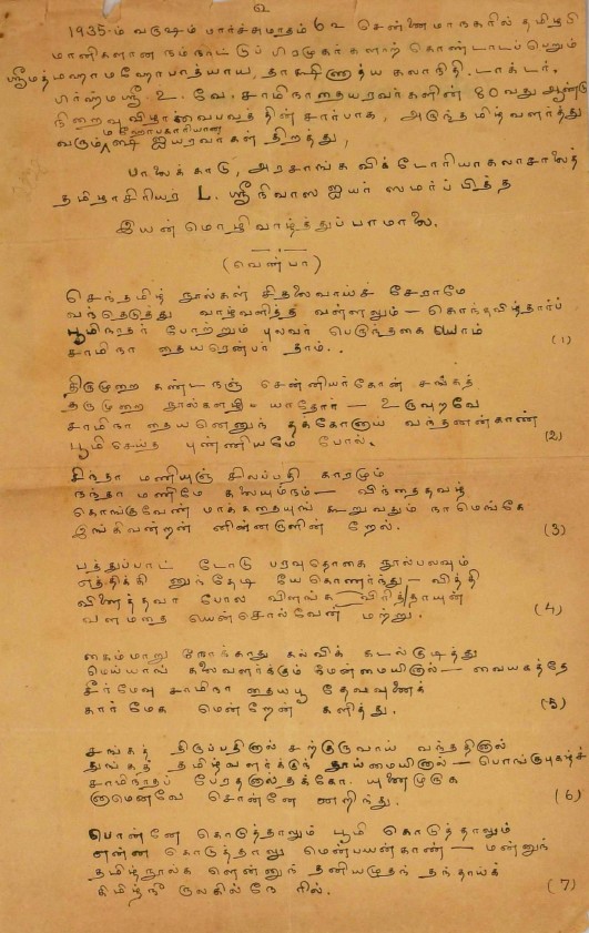 வாழ்த்து மடல் : மகாமகோபாத்தியாயர் (பெரும்பேராசிரியர்) விருது பெற்றதற்கு வாழ்த்து சனவரி 2, 1906