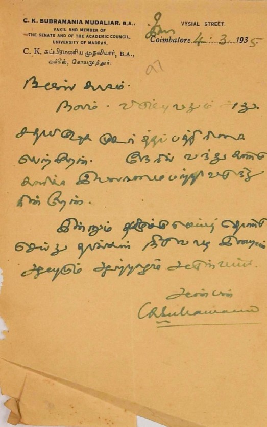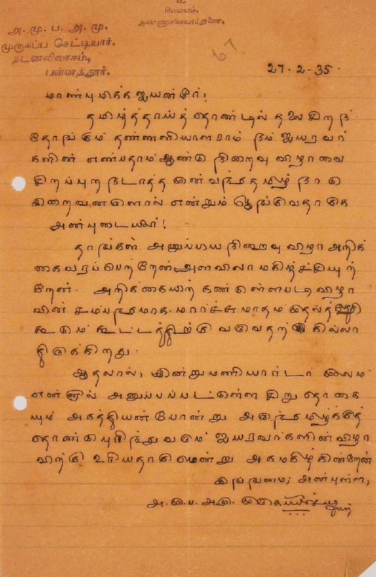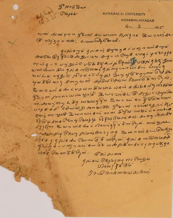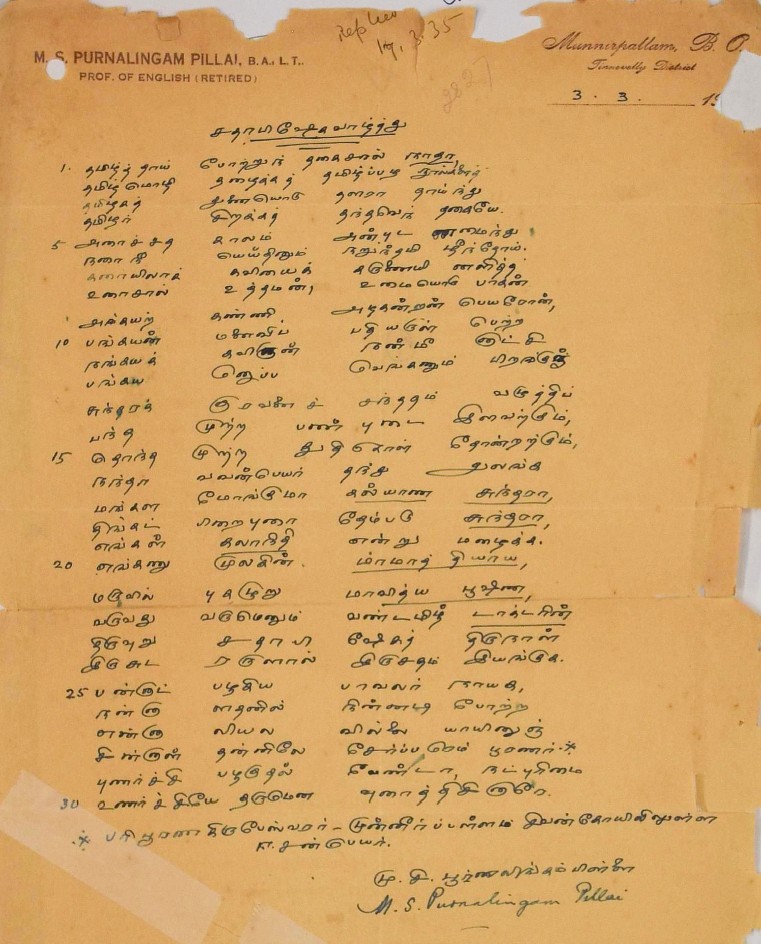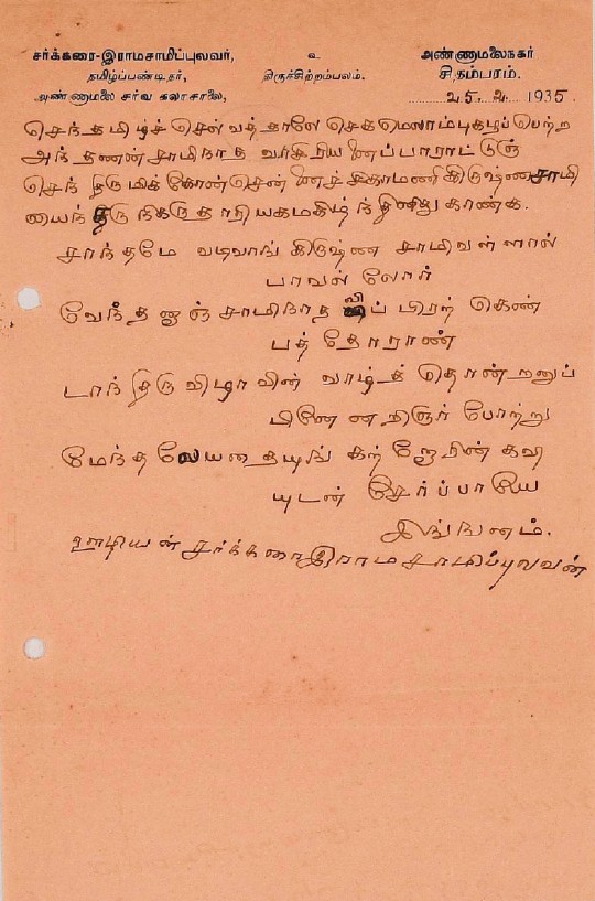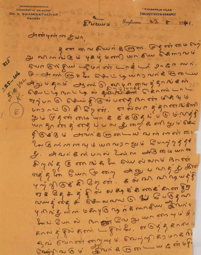 வாழ்த்து மடல் : மகாமகோபாத்தியாய விருது பெற்றதற்குப் பாராட்டு சனவரி 6, 1906