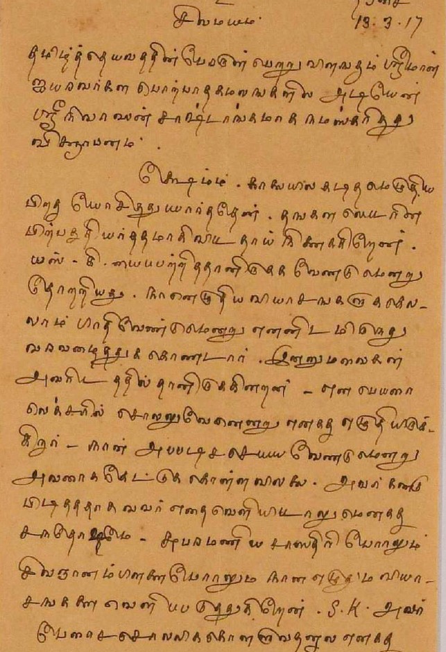 வால்மீகி இராமாயணம் : வால்மீகி இராமாயணம் தமிழ் மொழிபெயர்ப்பு நூல்கள் வேண்டி மடல் மே 18, 1907