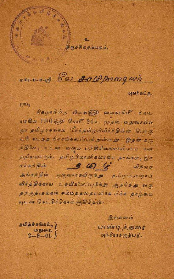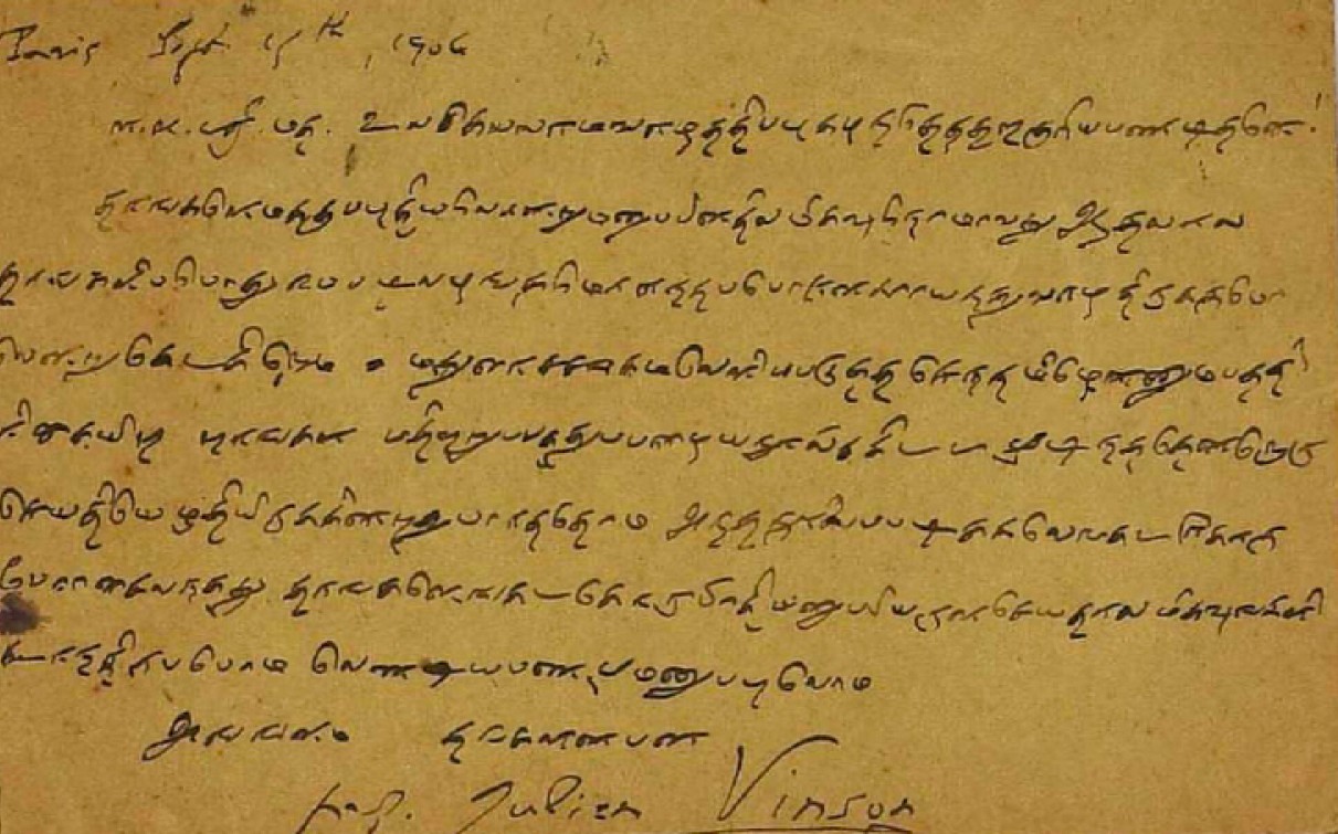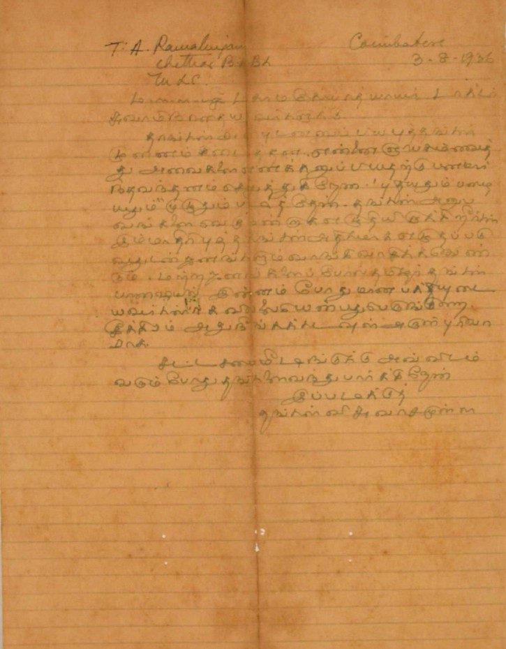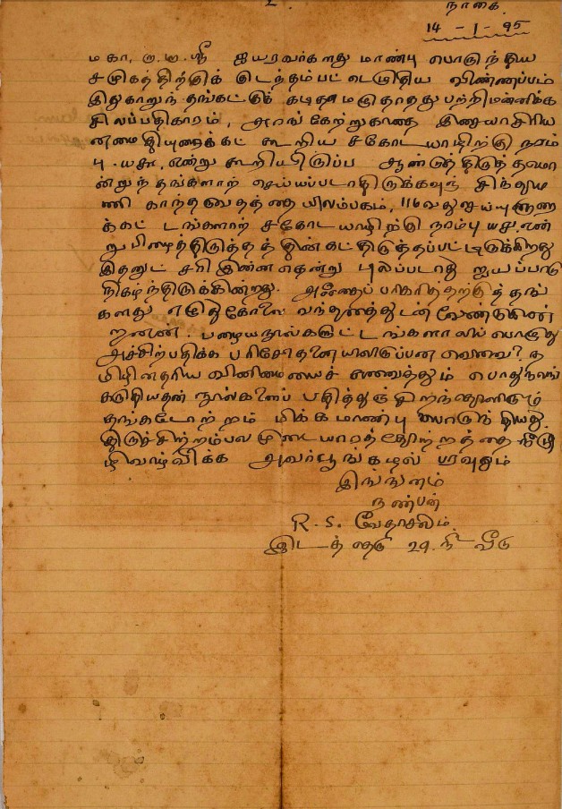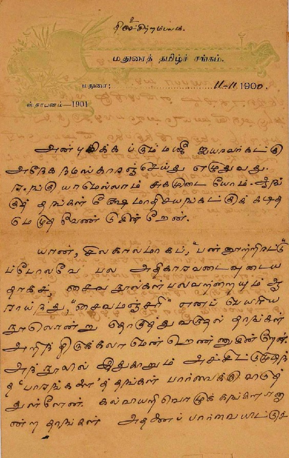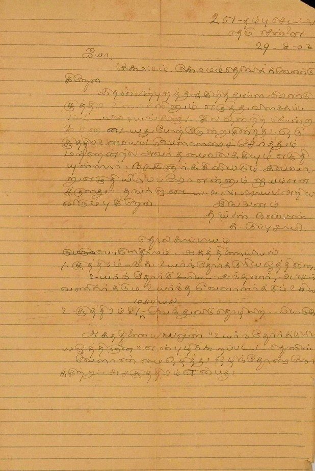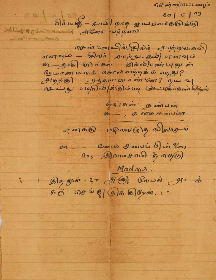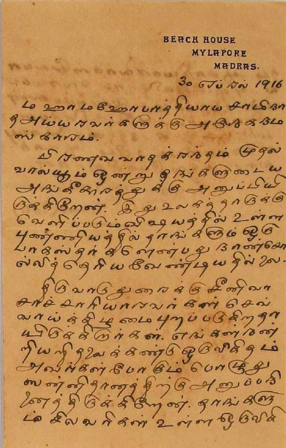 சென்னையில் சந்திப்பது தொடர்பாக : சென்னைக்கு வரும்போது சந்திப்பதாகக் கூறி மடல் பிப்ரவரி 14, 1908
