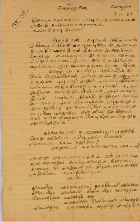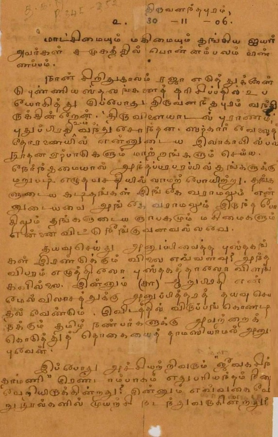 சொற்பொழிவு ஆற்றுவதற்கான அழைப்புக் கடிதம் ஆகஸ்டு 22, 1910