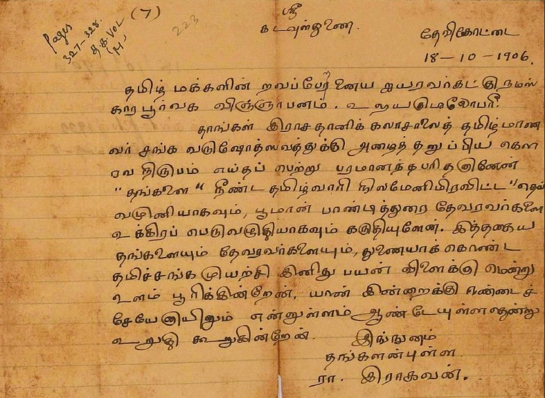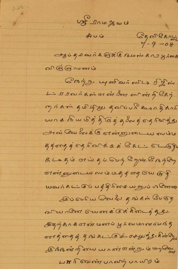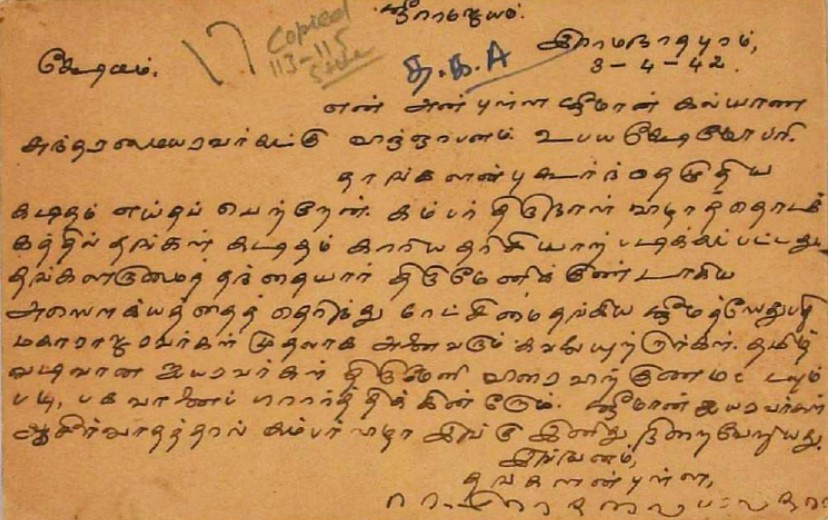 நூற்பதிப்புத் தொடர்பாக : நூற்பதிப்புச் செலவுக்குப் பணம் அனுப்புவது பற்றிய மடல் ஏப்ரல் 1, 1915