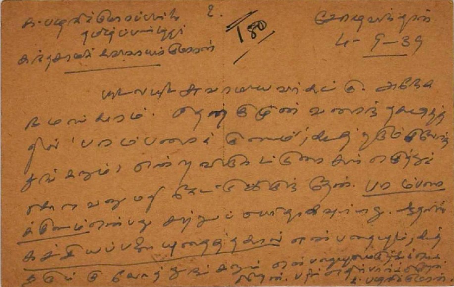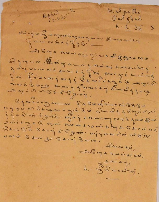 நன்றி மடல் : பாராட்டுச் சான்றுக்கு நன்றி கூறி மடல் ஆகஸ்டு 21, 1919