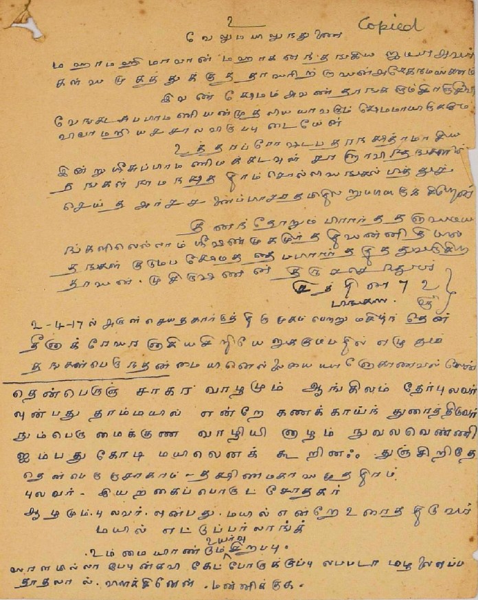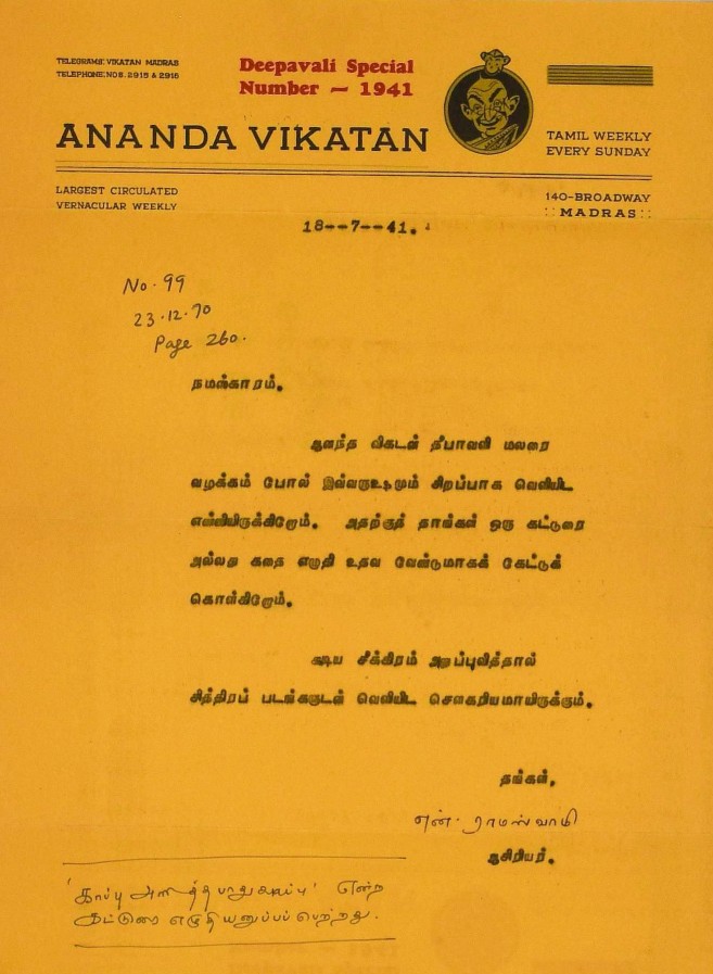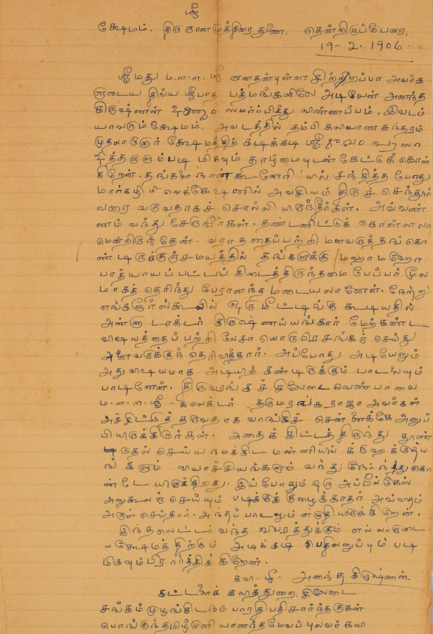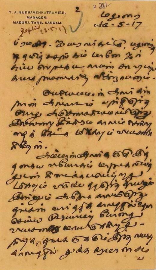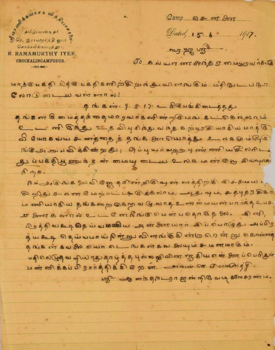 இராமாயணம் கருத்துரை தொடர்பாக : வால்மீகி இராமாயணம் தமிழ் மொழிபெயர்ப்பைப் படித்துக் கருத்துரைக்க வேண்ட மடல் சூலை 6, 1923