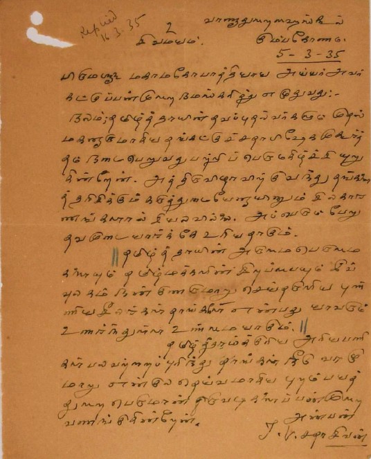 நன்றி மடல் : நூல் குறித்த கருத்துரைக்கு நன்றி தெரிவிக்கும் மடல் ஆகஸ்டு 5, 1930
