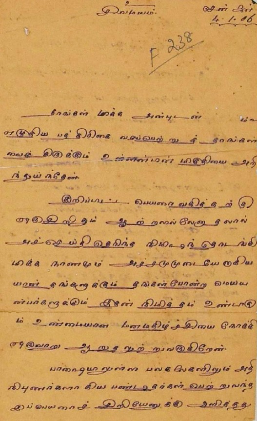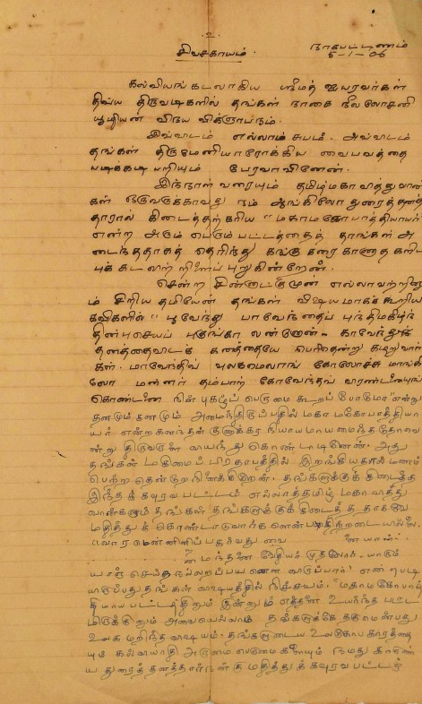 அண்ணாமலைப் பல்கலைக்கழகத் தமிழ்ப்பேரவையின் பாராட்டுக் கடிதம் : கலைநூல் முதுபுலவர் பட்டம் பெற்ற உ.வே.சாமிநாதையரைப் பாராட்டித் தீர்மானம் ஆகஸ்டு 10, 1932