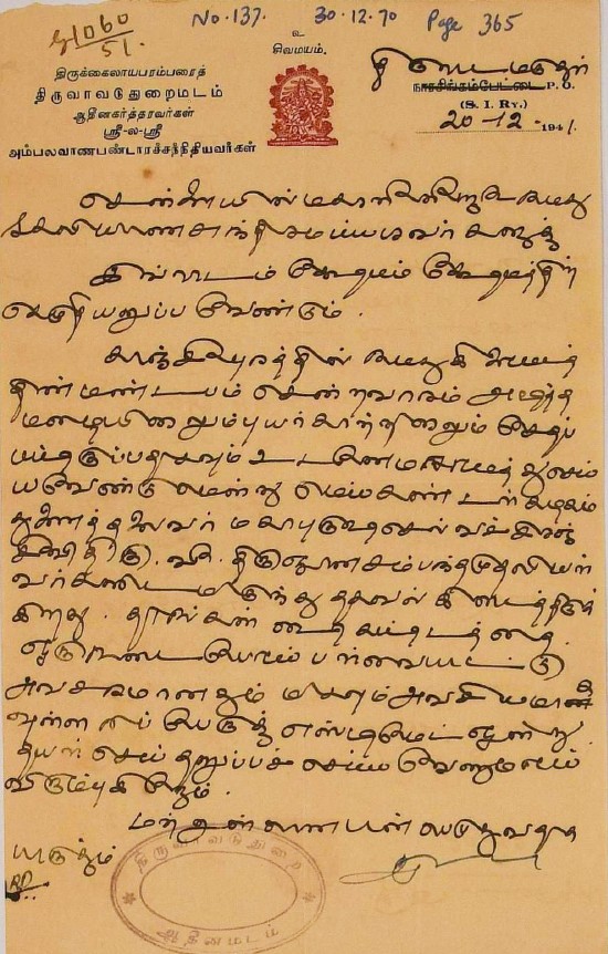 பஞ்சரத்தினம் : இயற்றிய பஞ்சரத்தினத்தைப் படித்துப் பார்க்க வேண்டி மடல் மே 7, 1936