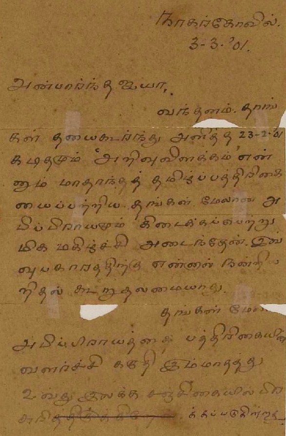 திருவருணை யமக அந்தாதி : திருவருணை யமக அந்தாதி அனுப்பியது குறித்த மடல் திசம்பர் 5, 1935