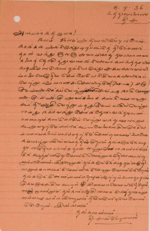 முன்னோர் வரலாறு : சங்குப்புலவர் தம் முன்னோர் வரலாற்றைக் கூறும் மடல் ஆகஸ்டு 23, 1936