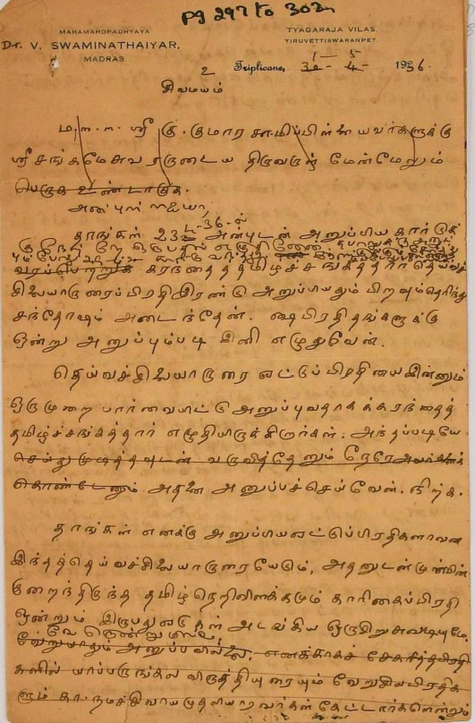 குறுந்தொகைப் பதிப்புத் தொடர்பாக : குறுந்தொகைப் பதிப்பைப் படித்து வருவதைத் தெரிவிக்கும் மடல் திசம்பர் 23, 1937
