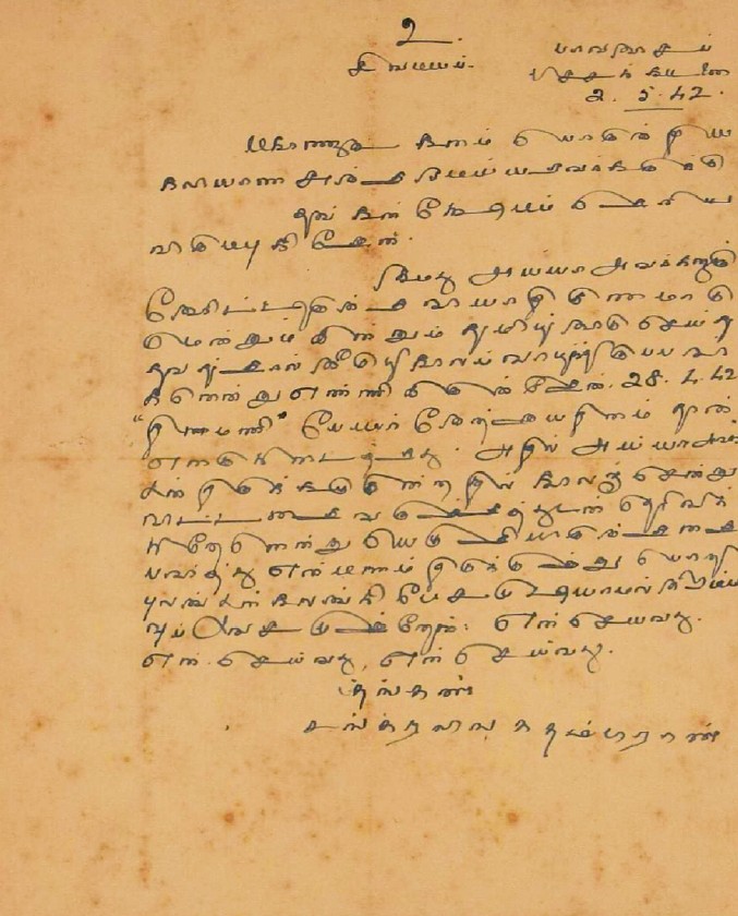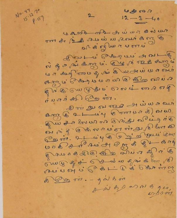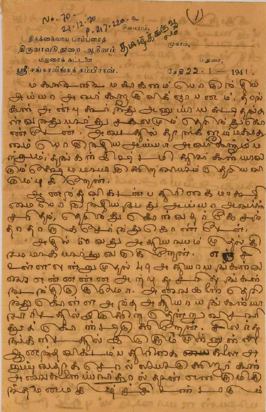 திருவாவடுதுறை ஆதீனம் : திருவாவடுதுறை ஆதீன சரித்திர விளக்கம் எழுத வேண்டி மடல் பிப்ரவரி 22, 1940