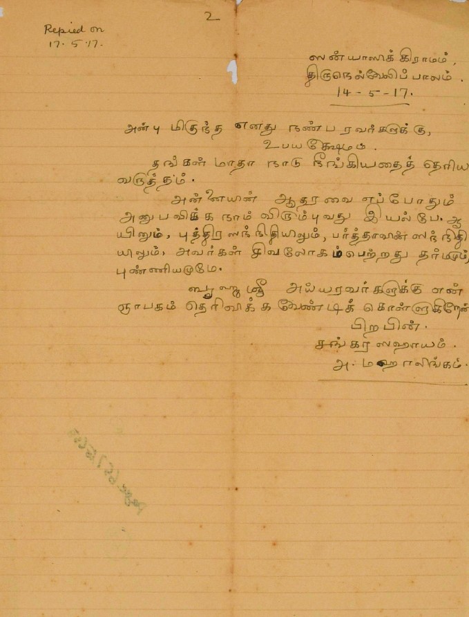 பணம் அனுப்பப்பட்டது தொடர்பாக : பணம் அனுப்பியதைத் தெரிவிக்கும் மடல் செப்டம்பர் 17, 1894