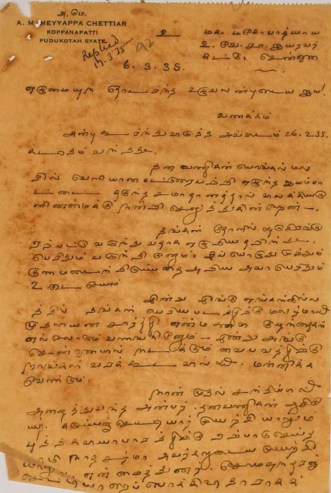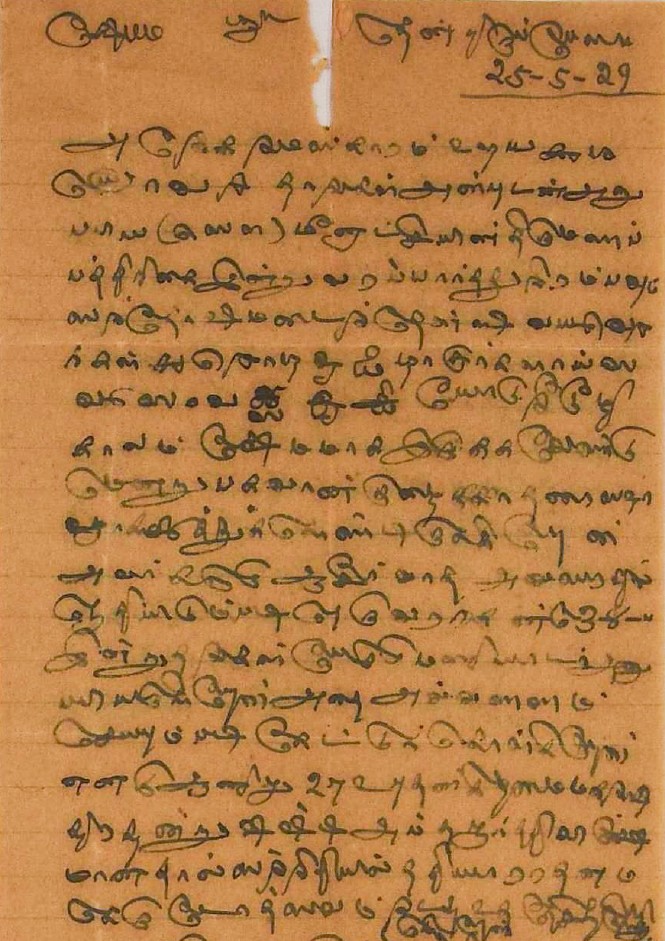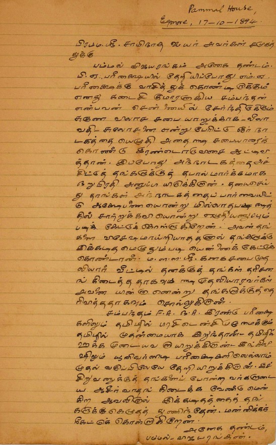 நன்றி மடல் : நாடகத்தைத் திருத்தியதற்கும், சாற்றுக்கவி எழுதியனுப்பியதற்கும் நன்றி கூறி மடல் நவம்பர் 28, 1894