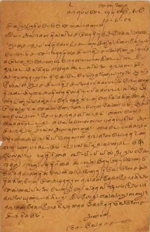 சோமசுந்தர நாயகர் : சோமசுந்தர நாயகரைப் பற்றி ஞாபகச் செய்யுளியற்றித் தர வேண்டி மடல் மார்ச்சு 3, 1901