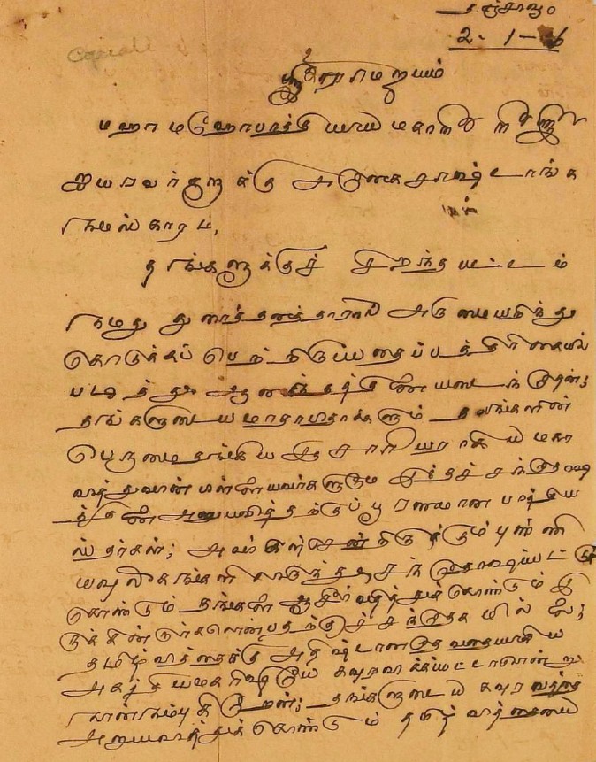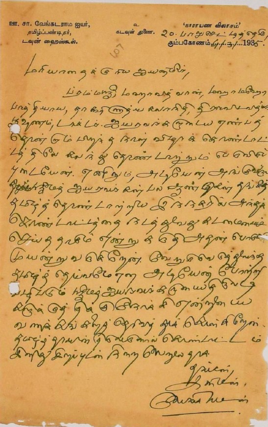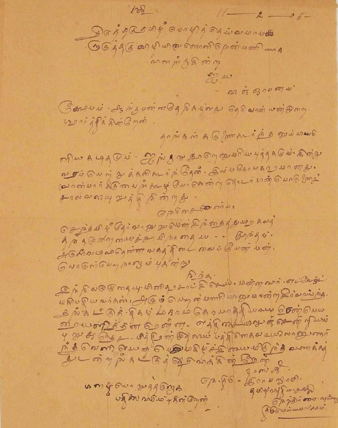 வாழ்த்து மடல் : மகாமகோபாத்தியாயர் பட்டம் பெற்றதற்கு வாழ்த்து சனவரி 23, 1906