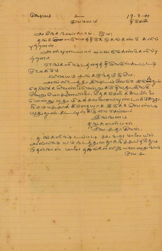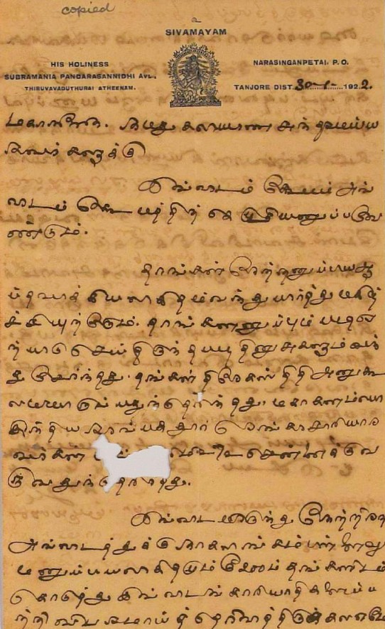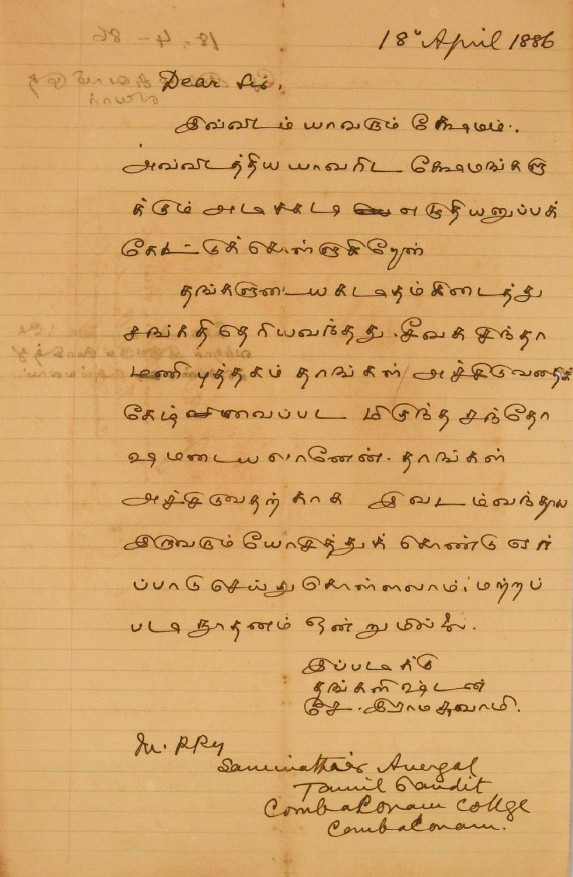 திருவாவடுதுறை ஆதீனம் : திருவாவடுதுறை ஆதீனத்தைப் பார்க்கச் செல்வதைத் தெரிவித்தல் சூன் 5, 1885