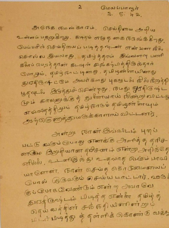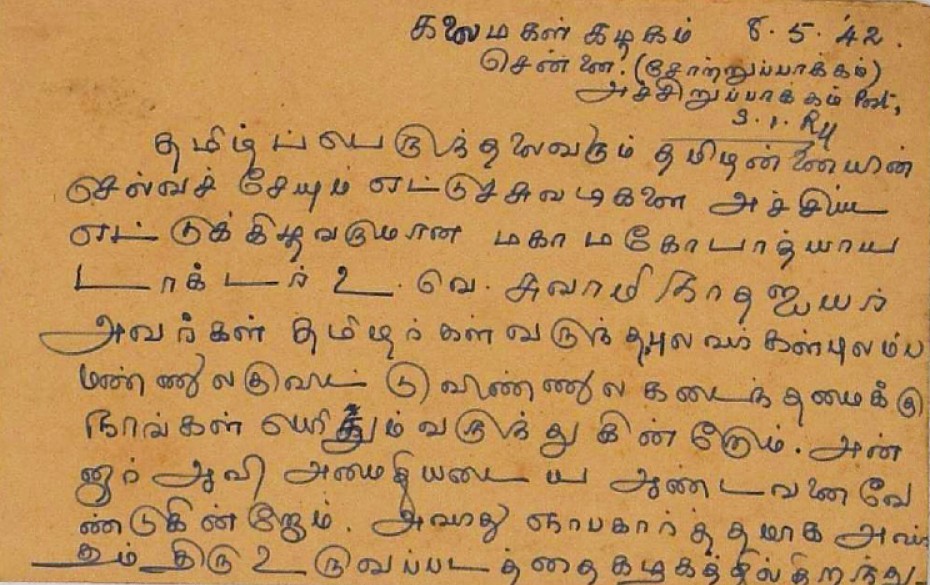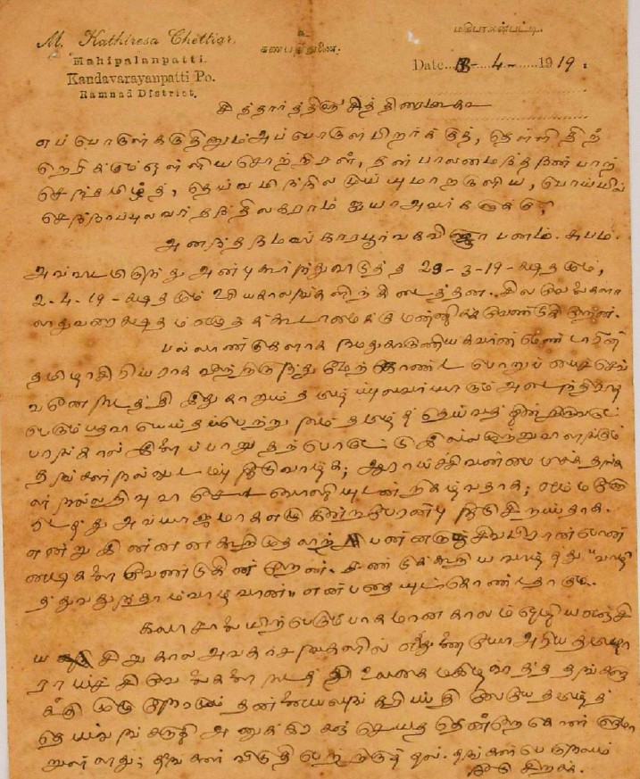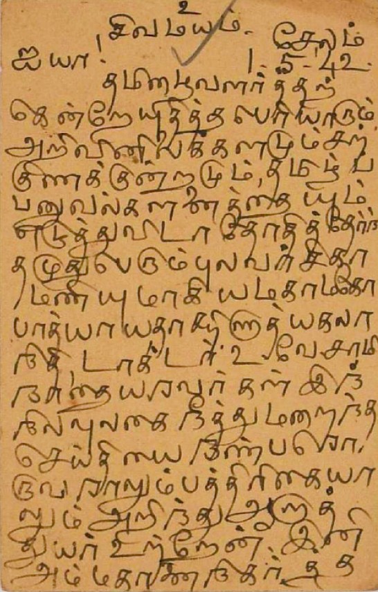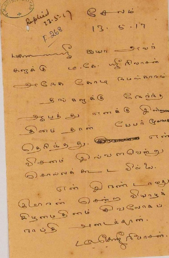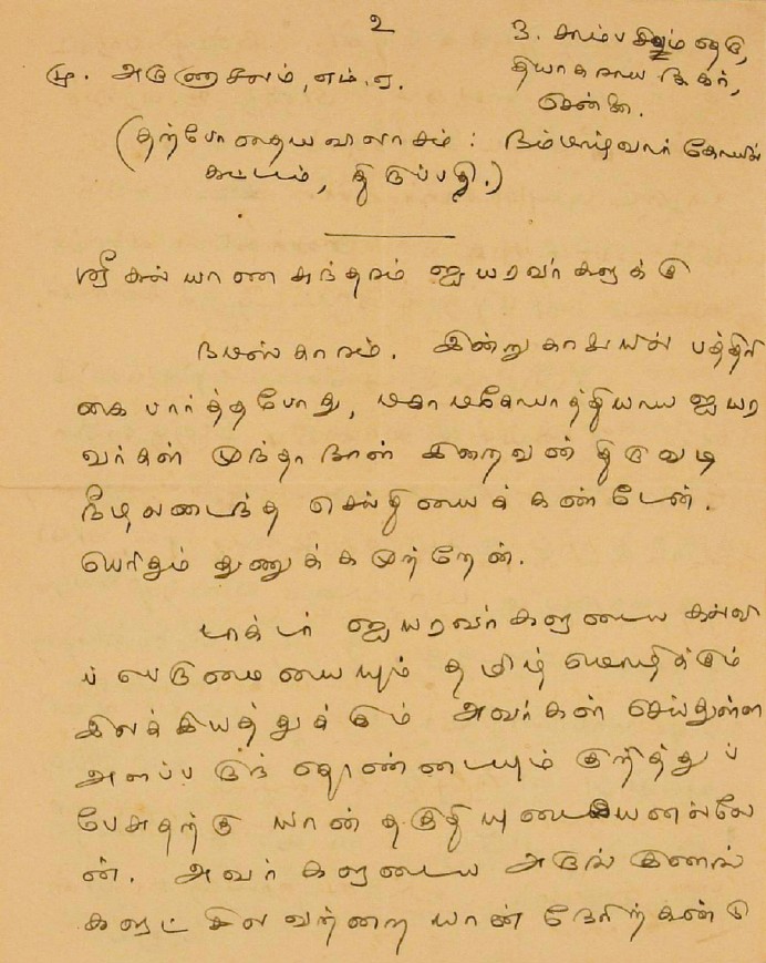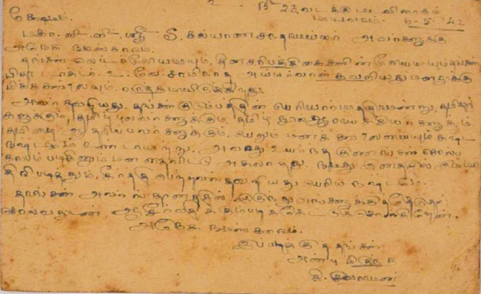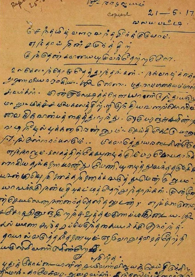 இரங்கல் மடல் : உ.வே.சாமிநாதையரின் தந்தை இறப்புக்கு இரங்கல் மடல் அக்டோபர் 18, 1893