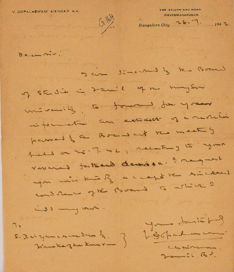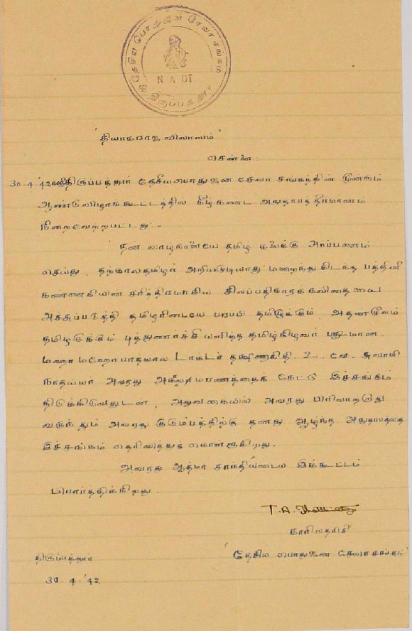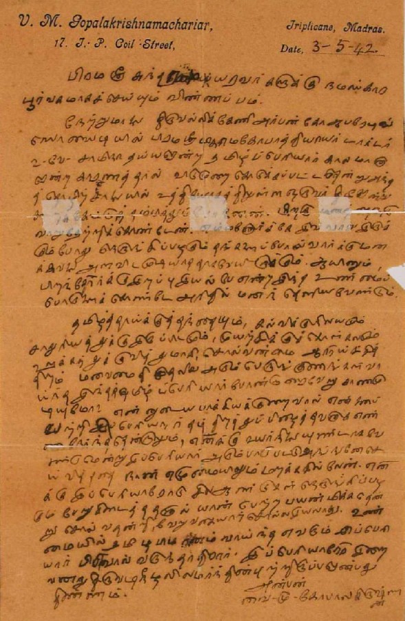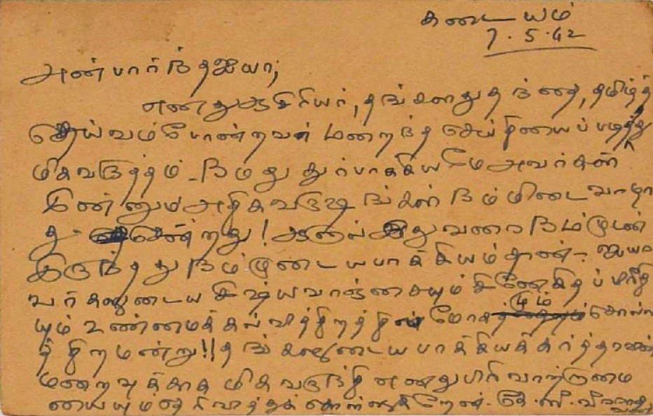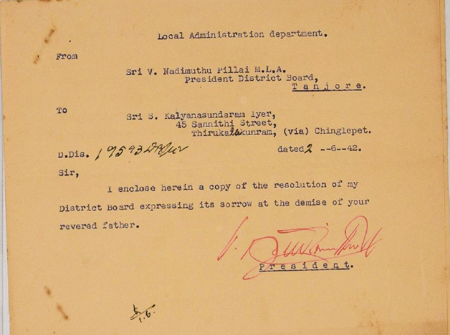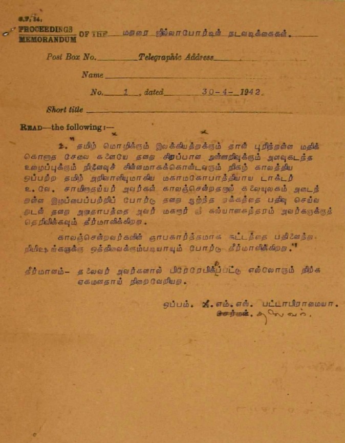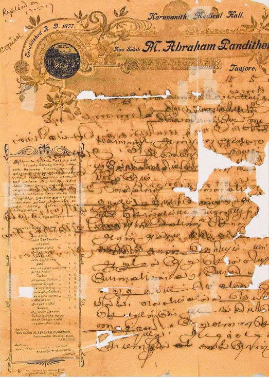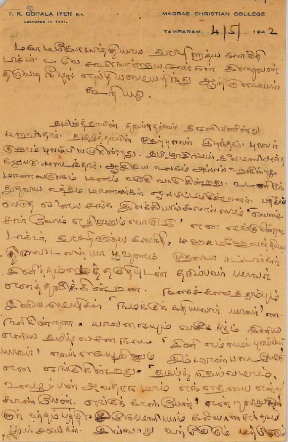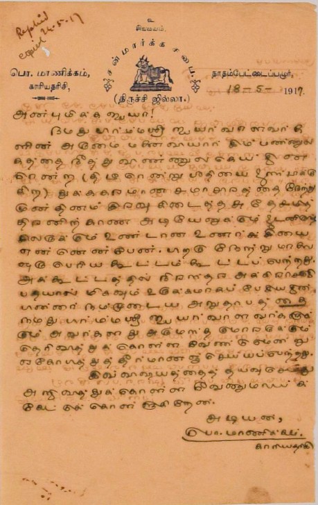 இரங்கல் மடல் : உ.வே.சாமிநாதையரின் தந்தை இறப்புக்கு இரங்கல் மடல் அக்டோபர் 18, 1893