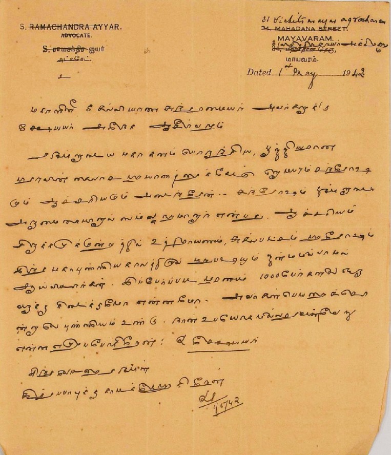 இரங்கல் மடல் : உ.வே.சாமிநாதையரின் மறைவுக்கு இரங்கல் மே 1, 1942