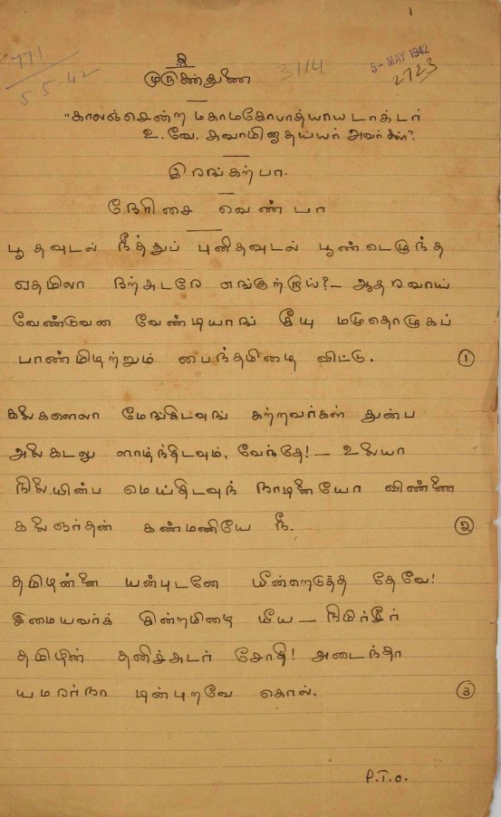 இரங்கற்பா : உ.வே.சாமிநாதையர் மறைவுக்கு இரங்கற்பா மே 2, 1942