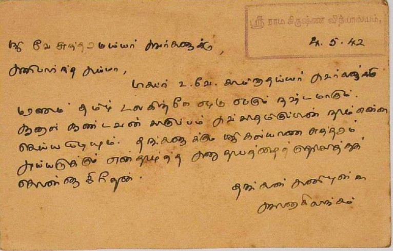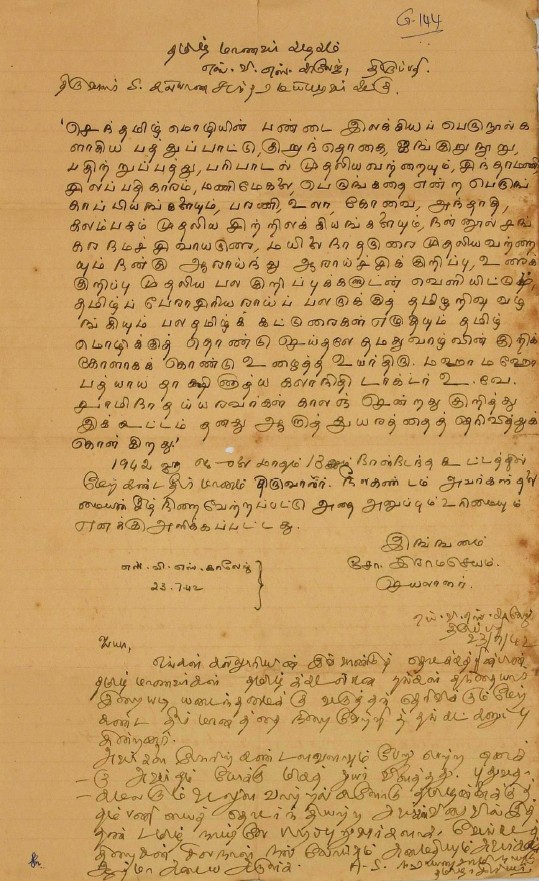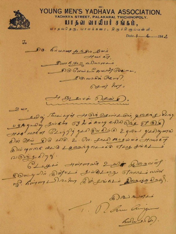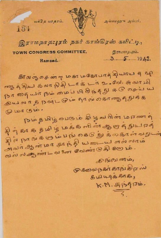 இரங்கல் தீர்மானம் : உ.வே.சாமிநாதையரின் மறைவுக்கு இரங்கல் தெரிவிக்கும் தீர்மானம் மே 4, 1942