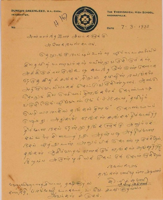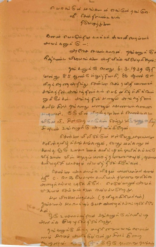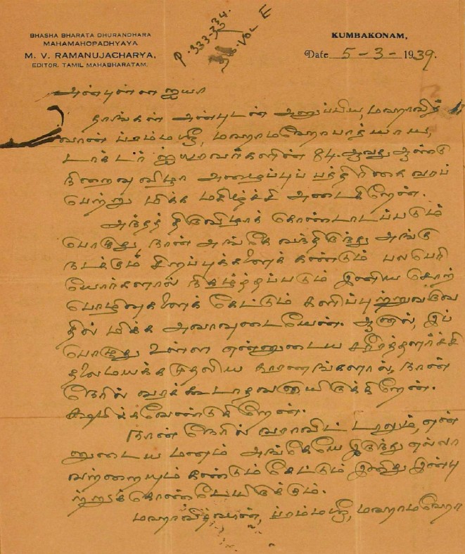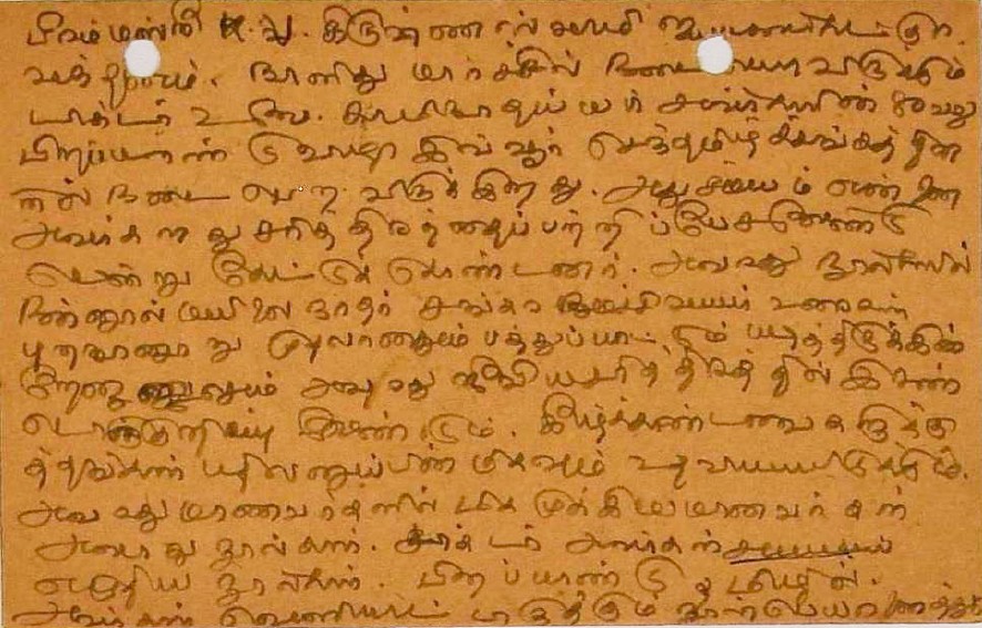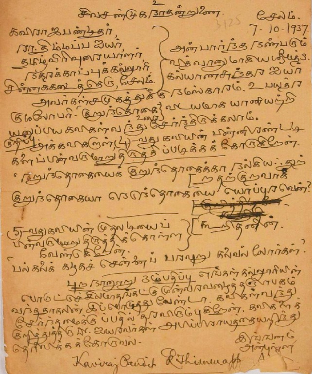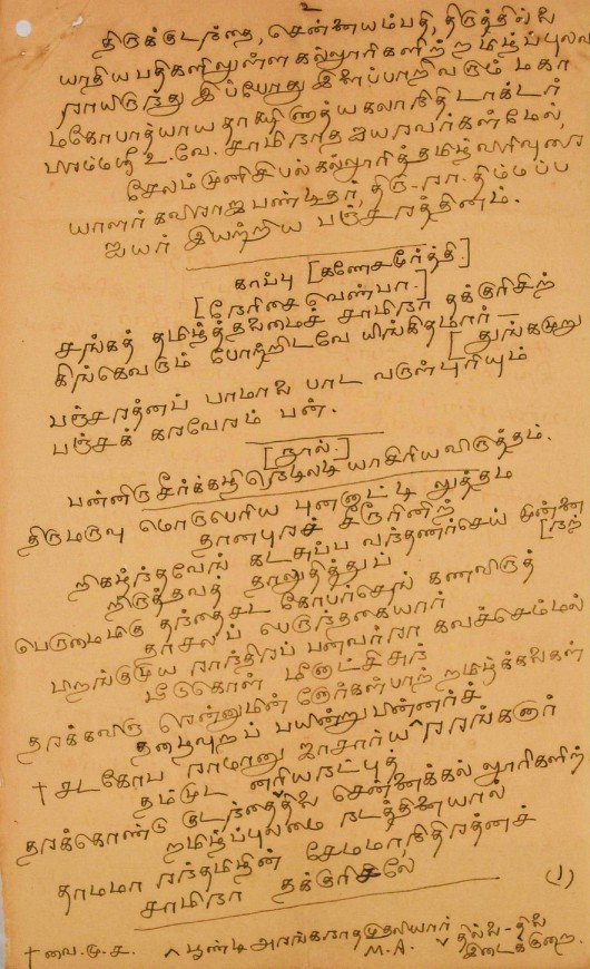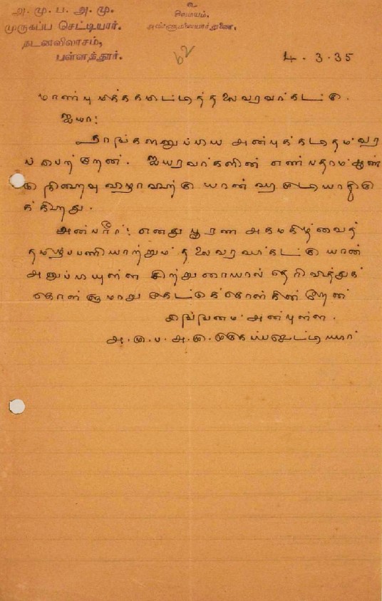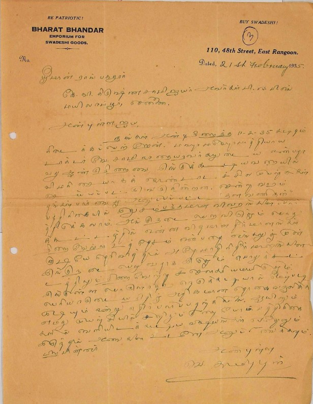 உ.வே.சா. பிறந்தநாள் விழா தொடர்பாக : உ.வே.சாமிநாதையரின் பிறந்த நாள் விழாவுக்கு நன்கொடை திரட்டுவது பற்றிய மடல் பிப்ரவரி 14, 1935