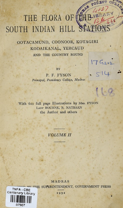 The Flora of the South Indian Hill Stations : Ootacamund, Coonoor, Kotagiri, Kodaikanal, Yercaud, and the country round - Vol. 1