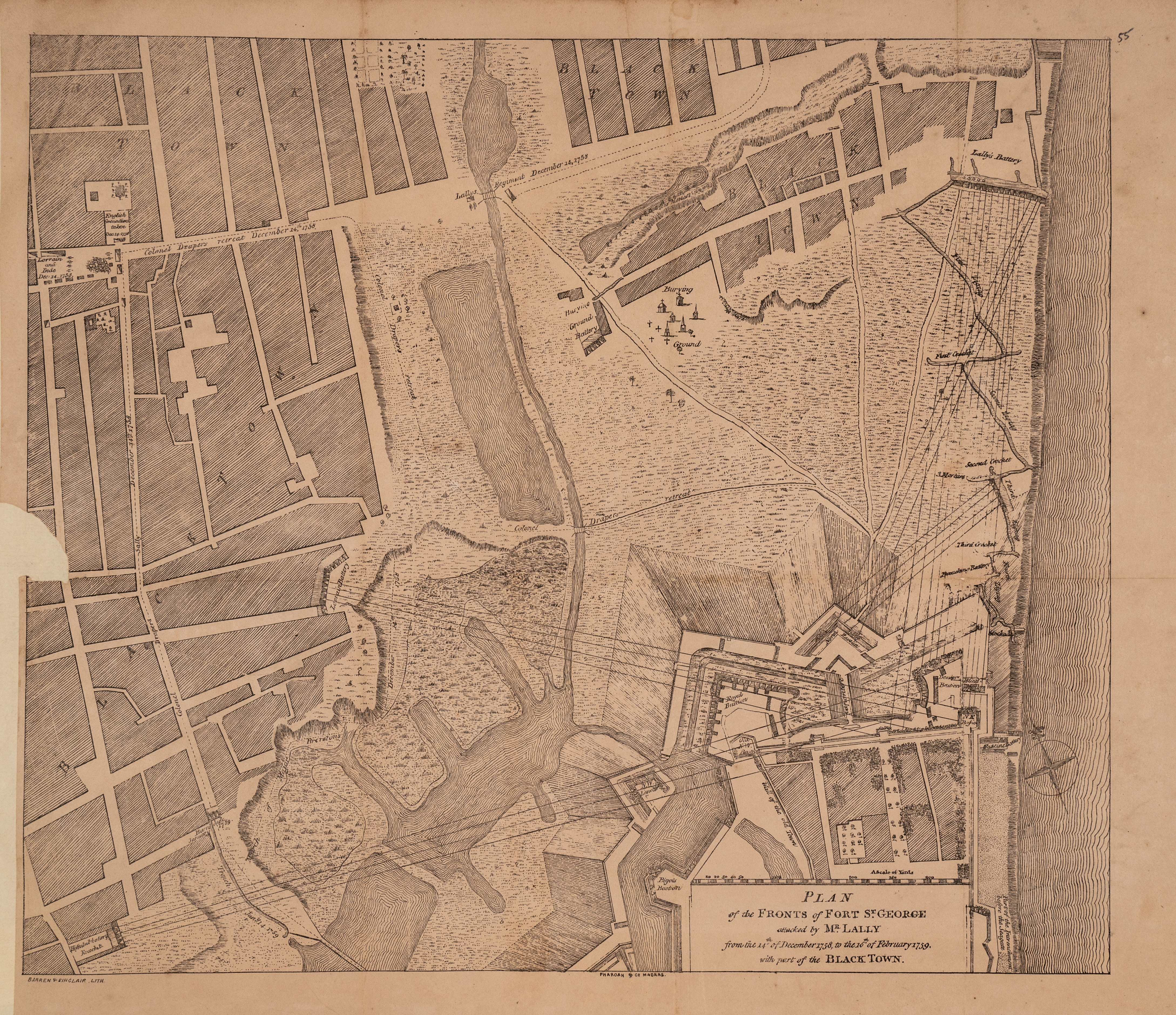 | பொதுவான குறிப்புகள் | Plan of the Fronts of Fort st. George attacked by Mr. Lally from the 14th Dec. 1758 to the 16th Feb 1759 with the part of the Black Town |