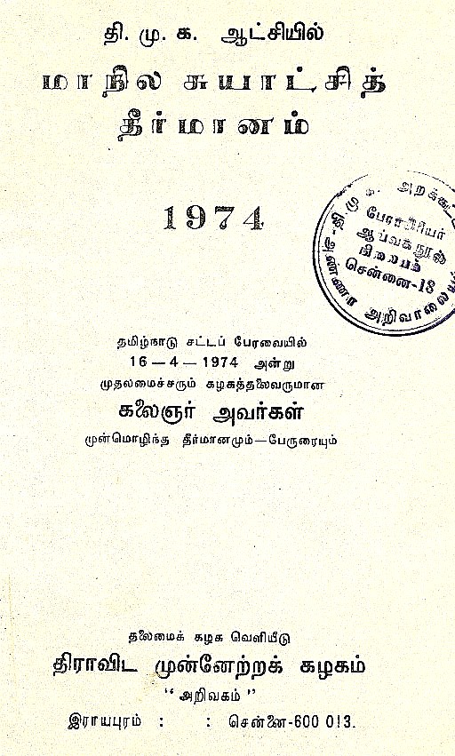 தி.மு.க. ஆட்சியில் மாநில சுயாட்சித் தீர்மானம்