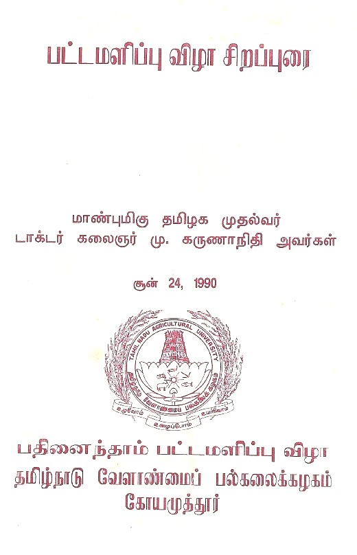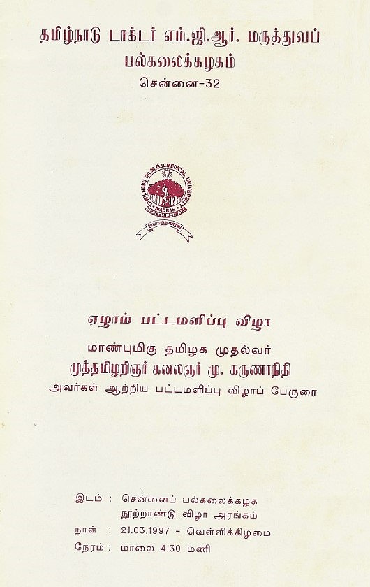 டாக்டர் எம்.ஜி.ஆர். மருத்துவப் பல்கலைக் கழக விழாப் பேருரை