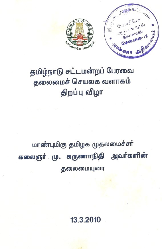 தலைமைச் செயலக வளாகம் திறப்பு விழா தலைமையுரை