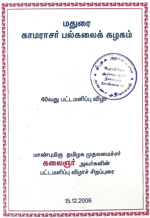 மதுரை காமராசர் பல்கலைக் கழக பட்டமளிப்பு விழா