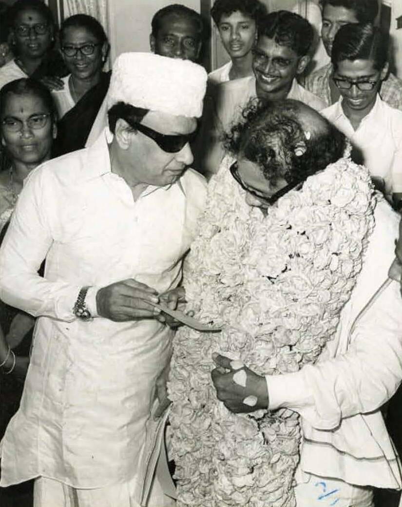 மெட்ராஸில் ஆம்புலன்ஸ் சேவையைத் தொடங்கி வைக்கிறார் கலைஞர், அருகில் எம்.ஜி.ஆர். (அக்டோபர் 16, 1971)