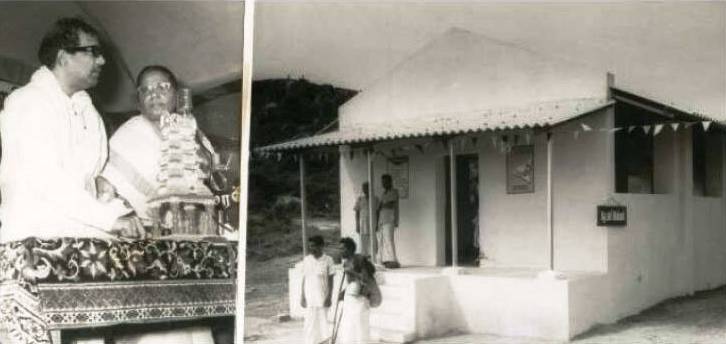 செங்கற்பட்டு மாவட்டம் பரனூரில் தொழுநோய் மறுவாழ்வு இல்லத்தைத் திறந்து வைக்கிறார் கலைஞர். அமைச்சர் சத்தியவாணி முத்து உடன் இருக்கிறார். (அக்டோபர் 2, 1971)