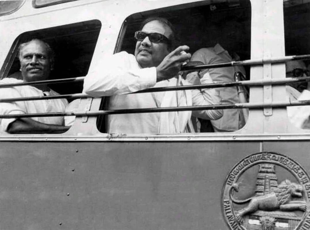 தமிழ்நாடு முதலமைச்சர் அண்ணா கலைவாணர் என்.எஸ். கிருஷ்ணன் சிலையைத் திறந்து வைத்தபோது அவருடன் கலைஞர், நடிகர் திலீப் குமார், எம்.ஜி.ஆர்., எஸ்.எஸ். வாசன். (ஜனவரி 16, 1969)